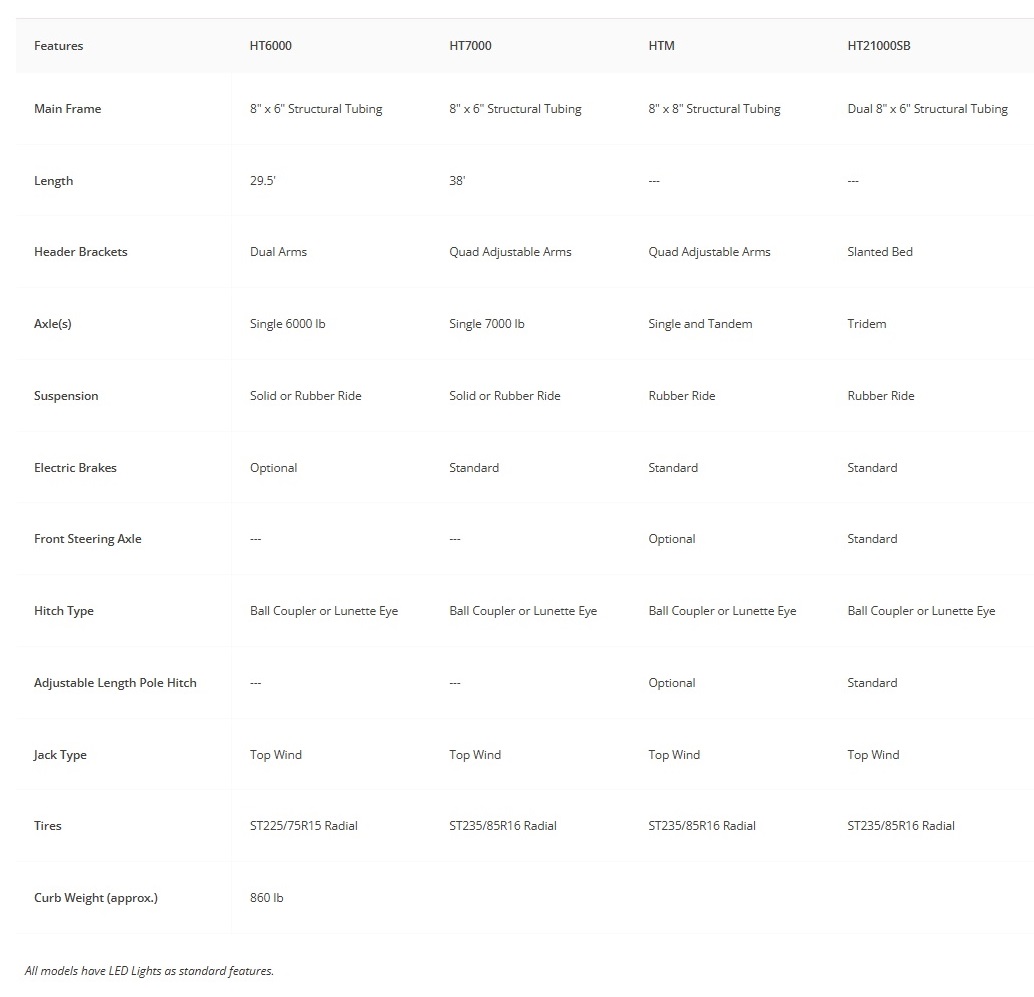 Loading and transporting your combine straight cut headers is now easy and simple. Whether just storing, traveling long distances or simply moving your equipment around the farm, these transports are built to last. The Model HT6000SS is designed for the older single rigid header. The HT7000 and HT-M are designed for the newer 35’ flex and draper headers. If you need to transport or store a 40’ or 45’ flex and flex/draper header and only the best will do the HT21000SB will be the unit for you.