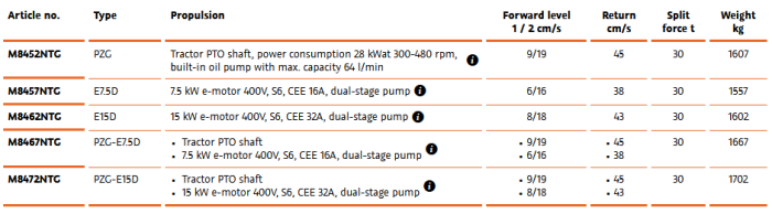 - TURBO model: double-cylinder splitting system, for double return speed and maximum hourly throughput