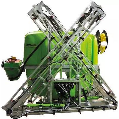 Features: Polyethylene tank with total emptying. Hand-washing cistern. Outer layer. Circuit-washing cistern. Hot-dip galvanized steel heavy profile frame with fork attachments. Low pressure diaphragm pump. 5-section proportional manual control with filter with separate taps for agitator and mixer and electric control for switching on and off in the cabin. External suction filter with self-filling valve. Inspectable hydraulic agitator. 2 Piston Hydraulic Cross Locking Bar with Rocker with Manual Mechanical Locking. Joint and springs antiurtouniget drip with blue kematal nozzles and drip filters. Hydraulic hoses with quick couplings on the tractor. Without cardan joint.