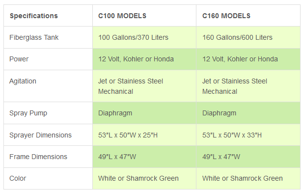 Larger than our PCO sprayers, the Low Profile Commercial Skid Sprayers are 47 inches wide and will fit in a variety of truck boxes. These units can also be optionally configured to pin mount on a Cushman Turf Truckster. The C100 and C160 differ only in the height of the spray tank. These sprayers come with stainless steel mechanical agitation standard and have the option of jet agitation instead.