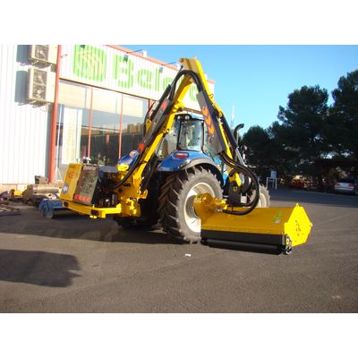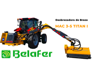 Mac-3 Titán hydraulic arm brushcutters. They are professional machines for all types of work and for all types of tractors. From 90 to 150 CV. With automatic security systems and hydraulic elements with electronics. State-of-the-art control system allows this type of MAC-3 Titán hydraulic arm brushcutters to make them competitive at work. In the design of this model, high quality hydraulic elements have been used with the most complete hydraulic brands on the market. Hydraulic pump equipment of 100 liters as standard and up to 130 liters on request, allow high powers for specific jobs. The arm reaches from the center of the tractor with these models are 5, 6 and 7 meters with the Mac-3 telescopic model. The Mac-3 Titán-V models are machines that are ventral mounted in the center of the tractor, allow good visibility and are designed for Companies and Organizations exclusively dedicated to this type of clearing work.