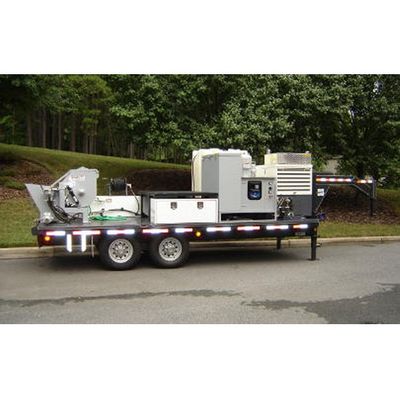 Using a trailer as an equipment platform frees up the towing vehicle for other purposes when the equipment package is not in use. Most equipment packages are assembled on a trailer platform consisting of a heavy duty 8" wide x 18" long checker plate steel deck over trailer. Both goose neck and tag along trailer configurations are available. Goose neck trailers offer the advantage of tighter turning/backing radius, better load distribution between the trailer and the truck and less sway.