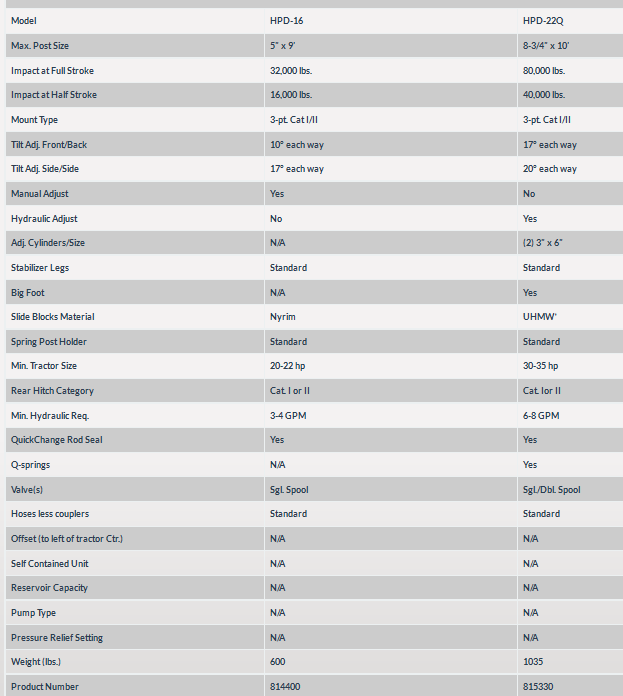 Worksaver - Model HPD-16/22Q -Manual Adjust 3-Pt Hydraulic Post Drivers