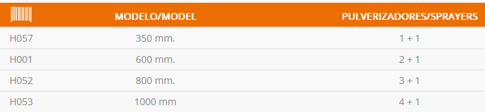 Manual herbicide bar with regulation of working width and inclination of the screen. Screen with spring shock. Sprayers with drip + one orientable. Plastic hood for protection.