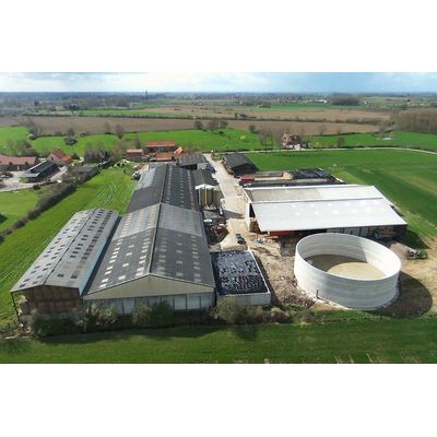 A manure storage tank of 35300 cubic foots (1 million liter) is built in a week, from the floor to the top of the wall. HSR (high sulfate resistance) quality cement is use.The construction complies with the strict VERITAS- regulations and standards. Manure treatment facilities are built in a practical and simple way at a height of 4, 5 and 6m or more.