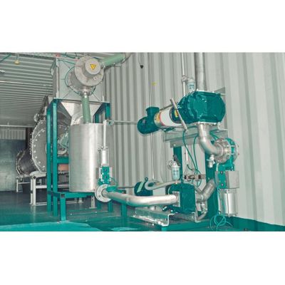 The completely closed manure dryer / digestate dryer uses the flue gases from a CHP plant or from the pyrolysis reactor as indirect energy for heating. In the case of manure drying / digestate drying, this gives the advantage that only the small quantities of exhaust gases equal to the evaporated water are created. That is why the installation is compact and has low operational costs.