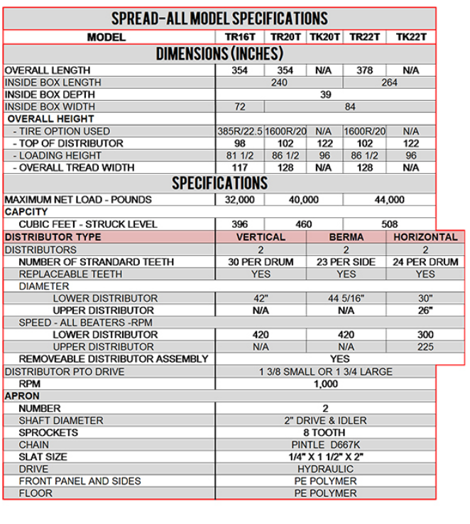 Spread- All - Model TR16T, TR20T, TR22T, TK20T, TK22T -Manure Spreaders