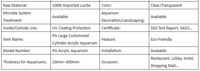 Type: Aquariums & Accessories Aquarium & Accessory. Type: Aquariums. Place of Origin: Shanghai, China (Mainland) Brand Name: PG Acrylic. Raw Material: 100% Imported Lucite Color: Clear/Transparent.
