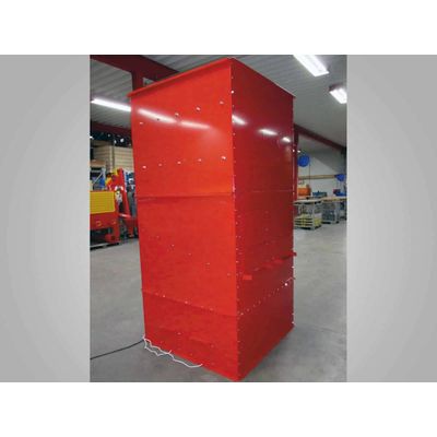 The drying storage for large amounts. Thanks to the Maxi Dryer, large quantities of nuts can be dried in a short time and with very good quality. Up to 1,000 litres of dried nuts can be produced approximately every 24 hours. During the drying process, the nuts are stored on 3 different height levels. The lower level is the outlet used to empty the dry nuts. Then, both of the upper stages are opened so that the nuts fall down one level. The upper level can be filled with fresh nuts. The air stream is generated with a gas heater and a blower on the rear of the drying storage. The moisture of the nut can be checked using our additionally available moisture meter.