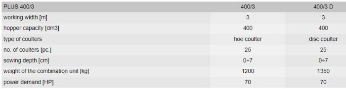 UNIA - Model PLUS 400/3 -Mechanical Combination Seed Drill
