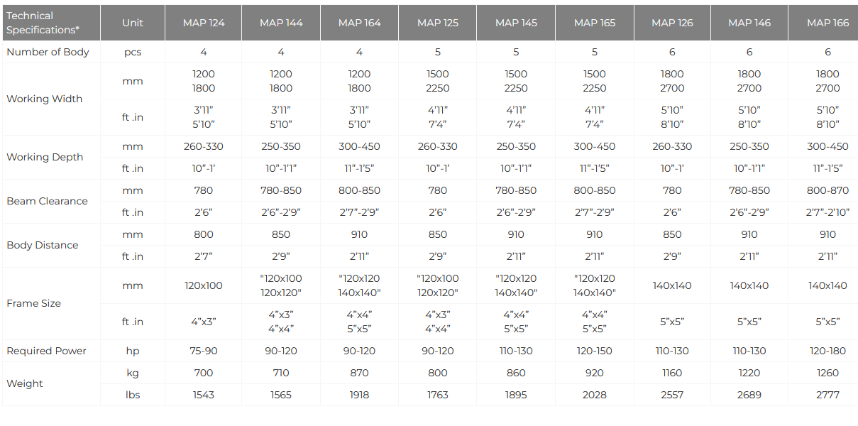 Agromaster - Model MAP -Mechanical Inch Adjustable Profile Ploughs
