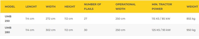Flail topper series UMLB is intended for usage on all agricultural areas, maintenance of green spaces, neglected fields, canals and embankments. Mulches plant residue up to 4 cm in thickness. Quality and robust construction enables intensive use. Tractor drive is transmitted through the drive shaft to the auxiliary shaft of the gearbox and then through the belts to the main shaft.