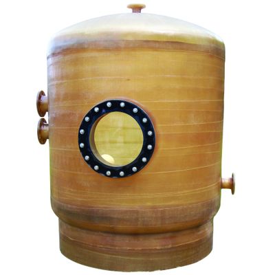 Currently, the preponderance of these tanks is that they are constructed of fiberglass which is not damaged by the chlorine fumes. When using fiberglass there are construction considerations that differ from metal, mainly due to the fact that fiberglass is not as strong under vacuum. Several conditions can occur in the normal swimming pool operation which can create a vacuum in the tank: