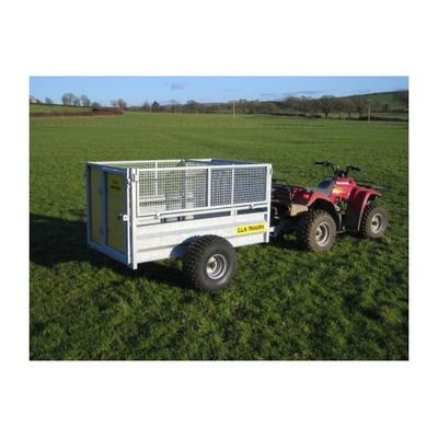 5ft x 3ft ATV Livestock Trailer. Fully Galvanized. For off road use. Internal divider. Fold down mesh sides. Loading door in rear tailgate. 32" high sides. 22 x 11 x 8 wheels and tyres.