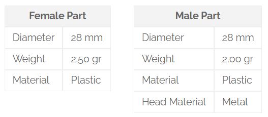 It is a metal-headed plastic ear tag used for sheep and goats. It is designed for ovine animals such as pigs, sheep, and goats, as well as pets and street animals such as dogs. The male part has a metal tip. The head of the female part is completely closed. Ear tags are easy to apply and can rotate easily on-ear, so the ear tag is not affected negatively by animal movements and does not restrict the animal`s movements.