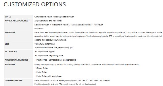 AiBPS. with our biodegradable bag selection including a variety of products from heat seal bags to biodegradable stand up pouches. Our eco-friendly products are designed for sustainability and minimizing waste, while still characterised by high performance in regards to the essential functions of a packaging pouch, i.e. product protection and display.