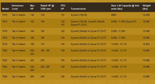 Welcome to the next generation of mid-frame row crop tractors with a completely redesigned cab, generation 2 SCR technology, the industry leader in emissions control, and all new family styling. The 7600 Series features the choice of the exclusive Dyna-VT™ CVT (continuously variable transmission) which provides infinitely variable speed control from supercreep to transport speed without shifting, jerking or a delay in traction or power, or the industry unique 24F/24R Partial Powershift with exclusive features like pre-set cruise speeds and standard Autodrive. Together, with the upgraded cab, emissions system, and choice of transmissions, the 7600 Series combines into the perfect tractor for any job around the farm or the field.