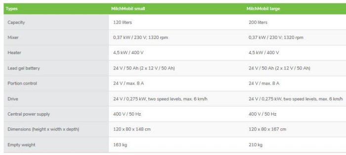The MilchMobil is available with a capacity of 120 and 200 liters.