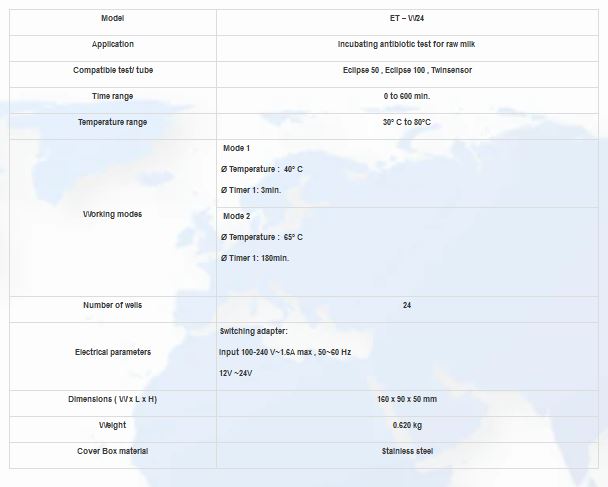 System for detection of inhibitors and antibiotics in the raw animal milk (block heater) compatible with tests twinsensor , 4sensor, eclipse 50, eclipse 100. Device is suitable for installation in milk collecting centers or milk transportation vehicle. We recommend using of our block heater which is developed to fit the shape and bottom surface of the micro-wells of different kind of antibiotic and inhibitor tests.