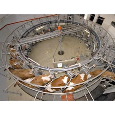 - The cow entry and exit is provided with a clamp lock so that, should a cow get stuck, the carousel stops, moves a bit rearward and restarts automatically.
