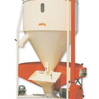 This is the simplest and cheapest solution for customers who wish to produce their own animal meals. The DUPLEX includes both milling (orange colour) and mixing functions (ivory colour) in one single machine; all functions are controlled by an electrical panel installed on board the machine. The grinding part consists of a cereal hopper with capacity of 750 kg, a magnet for elimination of any ferrous wastes and a mill with 36 hammers. With 360° screens and incorporated fan for cereal suction and pneumatic conveying of flour. The mixing part includes a 1000 kg mixer with vertical screw, an hopper for ingredient addition and a filter unit for connecting of dusts from the pneumatic conveying.