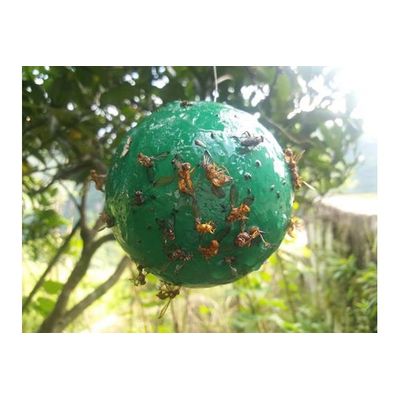 The main body is made up of EPS material, with a green coating like in orange fruit. The surface is evenly coated with high-efficiency sticky shellac. It is then wrapped with a release paper. The trap has a 15-20 cm wire at the top for installation.