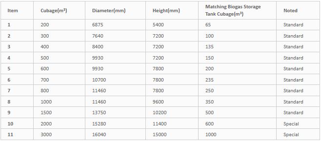 The size of each assembled tank is flexible (50m3 to 3300m3 is recommended). We can provide tailored services according to your requirments. The dimension of a standard 1000m3 assembled tank: φ 11.46m * H 9.6m.