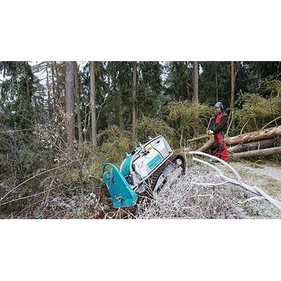 Pfanzelt is presenting a new tracked felling and forwarding mini-tractor for professionals at the KWF Exhibition 2016. The new machine is designed to flexibly perform a wide range of duties under a variety of working conditions. Anywhere where a cable winch is required to ensure safe working, e.g. for safety fellings, the new tracked felling tractor is the perfect machine for safer forestry operations. And not just there - also with problem tree fellings in cities and private gardens, the mini felling tractor increases safety and makes working conditions for ergonomic. Another application of the newly developed tracked felling tractor is preparatory work. The caterpillar tractor comes into its own on the most demanding terrain, on slopes and in standing timber on fragile soil structures. For optimum stability during winching and forwarding, the chassis can be hydraulically widened when it reaches the work location.