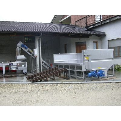 The washing and receiving tanks for apples, pomegranate, fruit in general are made upon customer request. Suitable to be placed below or above ground, made entirely of stainless steel, they can be equipped with hydraulic drives, weighing machines, lifting devices, bubbling system and other features. In the rotary basket systems the product is moved with air jets to facilitate the detachment of the residues of the collection, recovery circuits of the washing water with decantation filters or flour may be provided, many other solutions are available and applicable to make the work automated.
