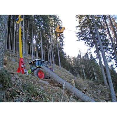 For yarding distances up to more than 400 m. Load capacity: 2.5 tons. Mainline speed: from 3 to 4.5 m/sec. With 2 or 3 drums, operated by the tractor PTO or by its own engine. Extremely compact, ideal for thinning operations. To be attached to the three-point hitch of the tractor.