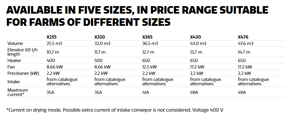 All X-Series dryers are built with Antti`s modern drying technology. The heat source is an efficient oil heater with an Oilon HVO oil burner. The X-Series dryers dry feed, seed and other small grains quickly and energy-efficiently. Speed is increased by the standard vacuum technology, where the air from the heater is sucked through the batch of grain being dried. A powerful pre-cleaner and vacuum technology also reduce dust ja noise levels.