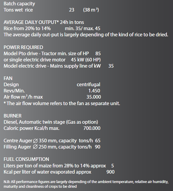 The Pedrotti Grain Dryers are extremely versatile machines, fully self-contained. They need not any outer mechanical equipment, and any building works. They also operate with the subsequent batches system and continuous recirculation of the crop, a system which ensures a perfect uniformity of the crop at the end of drying.