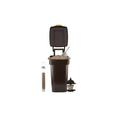 Store items indoors or outdoors with this durable container. Tall design with locking latch and wheels makes it the ultimate utility bin for storing items such as rock salt, dog food or bird seed.