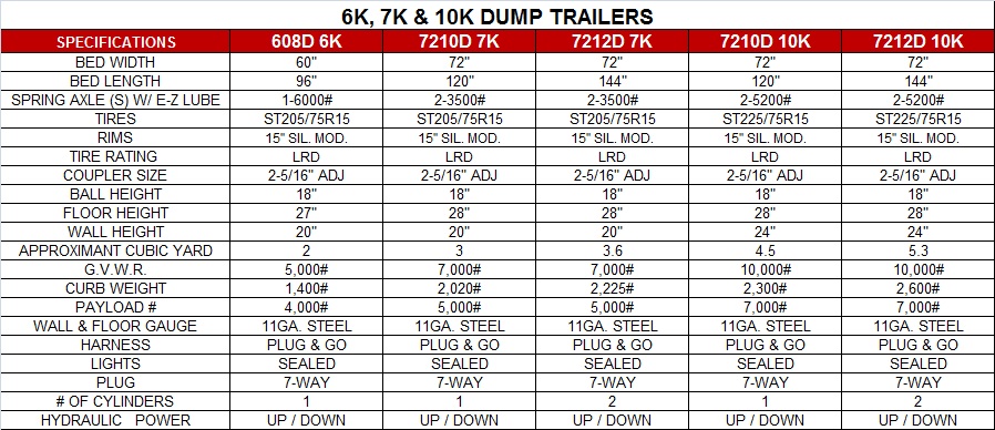 5' & 6' Wide 7K and 10K Low Profile Dump Trailers.