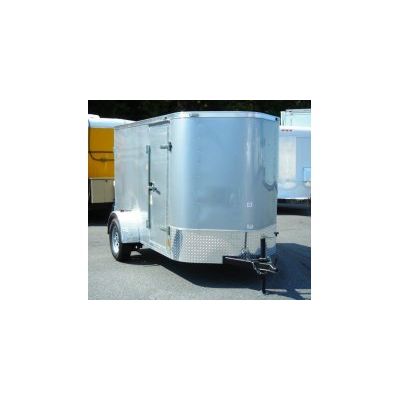 CONTINENTAL CARGO 5X8 ENCLOSED CARGO TRAILER. Double Rear Doors. The exterior is Silver .030 Aluminum with matching white fasteners on the seams only. 2ft aero dynamic v-nose, roof top vent, dome light, LED Rear Tail lights, Diamond Tread Stone guard, 15 inch Tires, silver MOD style Wheels. Smart, Sensible, Affordable, yet Stylish.