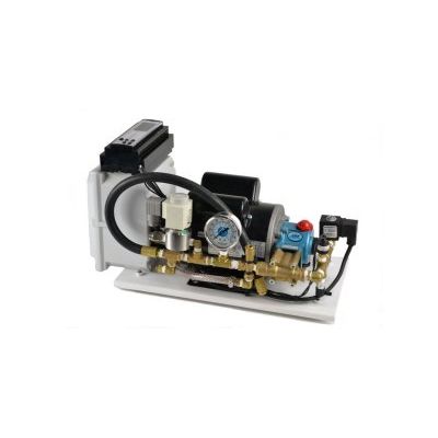 The Fogco 60 HZ ICC mist system is a 1000 psi all inclusive climate control system that monitors both temperature and humidity levels based on programmable set points and will automatically operate the system as needed. The system includes the direct drive misting pump, the 2 zone FOGCOntroller microprocessor with remote sensor, 50′ of instrumentation cable, a low flow pump, low water safety switch, electric drain valve, thermal relief valve, inlet solenoid, pulsation dampener, glycerin filled pressure gauge, and separate control box to house the electronics all mounted on a rust proof powder coated base plate.