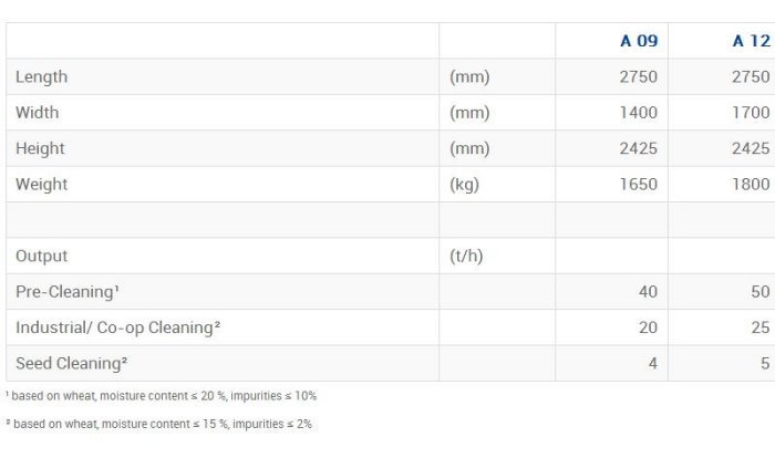 - Model A 09 and A 12 - Seed Cleaner
