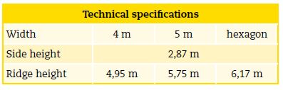 The roof fabric is made from PVC coated polyester fabric (white translucent, white non-translucent or colour). The roof fabric is stretched using ratchets. Flame retardant according to the French standard M2, German standard DIN 4102 B1 and British Standard BS 5438. The fabric is UV-stabilised and treated against deterioration due to rot and mildew.