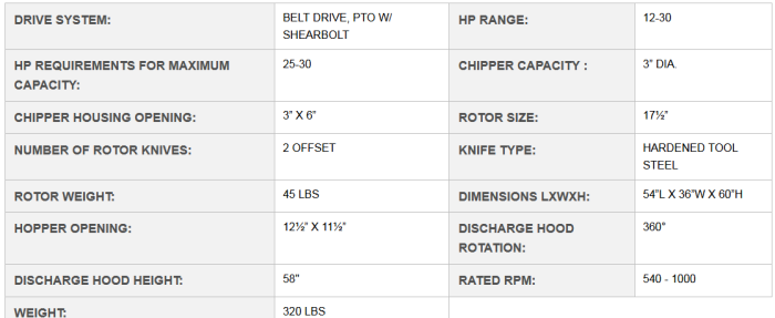 The self feeding chipper automatically pulls in limbs and branches up to 3” in diameter. Chipping action is powered directly from your tractor’s PTO. Easily fold up the hopper for compact transportation.