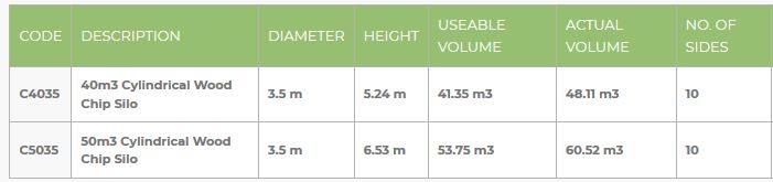 Our standard 10, 12 and 16 sided wood chip silos are manufactured from galvanised steel and provide a perfect outdoor storage environment for bulky wood chip fuel. They can also be modified for use with wood pellet fuel by inserting a conical base at the bottom. Their modular design allows them to be delivered to site flat packed for quick and easy assembly. Standard diameters of between 3-6m are available incorporating capacities from 40-160m3. Special ventilation panels help prevent condensation and maintain the moisture content of the fuel.