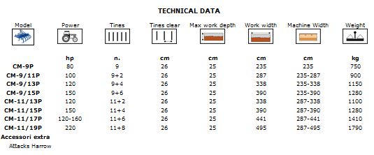 CM-P spring loaded tine tiller cultivator is a machine suitable for tractors with power ranging from 80 to 180 HP; very versatile machine ideal for cultivation of land with dry or humid loose packed soil, mixed soil or land mainly consisting of stones.