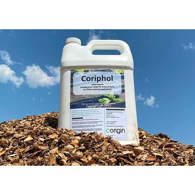 Coriphol is an aqueous solution comprised of numerous phenols, organic acids and other light weight biomolecules sourced from almond shells.