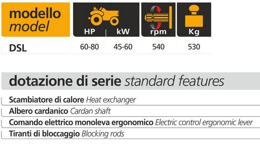 The DSL side-mounted device is an interchangeable device equipped with an integrated hydraulic system that, depending on the machine`s assembly configuration, may be attached to either the front or rear of tractors of suitable power.