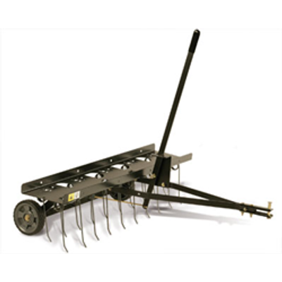 If your lawn has excessive thatch buildup, Brinly’s 40” Tow-Behind Dethatcher is the tool for you. Perfect for small to medium lots, this premium attachment gently combs old grass clippings, dead roots and other small debris to the surface where they’re easily bagged or re-mulched. The durable 20 independently flexing tines are 3/16” in diameter and feature a spring steel with triple coil strength. Need to cross the driveway? A single lever, accessible from your tractor seat, activates the 6” x 1.5” transport wheels. The dethatcher has three positions: transport, dethatch, and scarify.