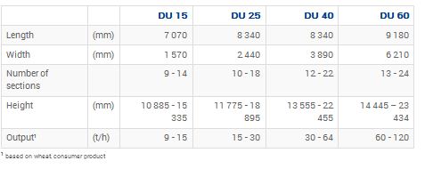 The PETKUS Continuous Flow Dryers Type DU are designed for drying grain and seed. Four series (15, 25, 40 und 60) are available.