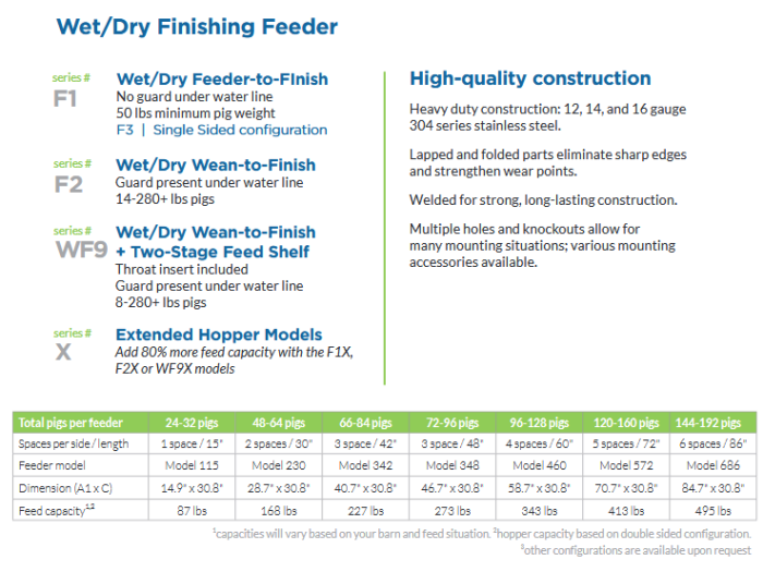 - Model F1 - Wet/Dry Finishing Feeder