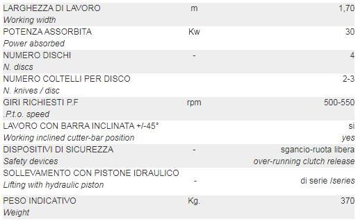 Rear mounted disc mowers, cutter-bar with cuneiform profile, reinforced disc, removable rotor support, a best output, even in bad soil conditions, is guaranteed.