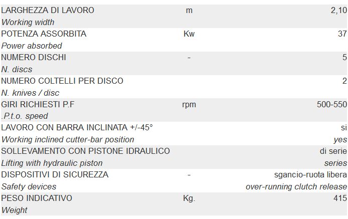 Rear mounted disc mowers, cutter-bar with cuneiform profile, reinforced disc, removable rotor support, a best output, even in bad soil conditions, is guaranteed.