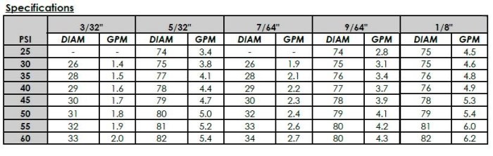 - Nozzle sizes available: 1/8”, 3/16”, 5/32”, 7/64”, 9/64”, 11/64”