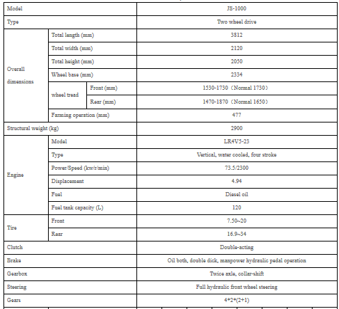 JS-1000 tractor is equipped with a famous engine, high ratio of torque reservoir. Large traction, attached with many implements. Side control device.